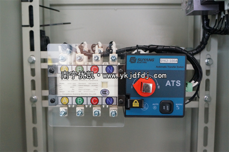 如何根據柴油發電機組功率大小計算雙電源自動轉換柜(ATS柜)電流大?。侩娏鞔笮=功率*1.8,根據電流大小選擇合適的電流的雙電源自動轉換柜(ATS柜)既可,如果沒有合適的電流的雙電源自動轉換柜(ATS柜)也可以選擇電流稍微大一點的。例如50KW柴油發電機組,電流大小A=50*1.8=90A,沒有90A的雙電源自動轉換柜(ATS柜)可以選擇100A的。
